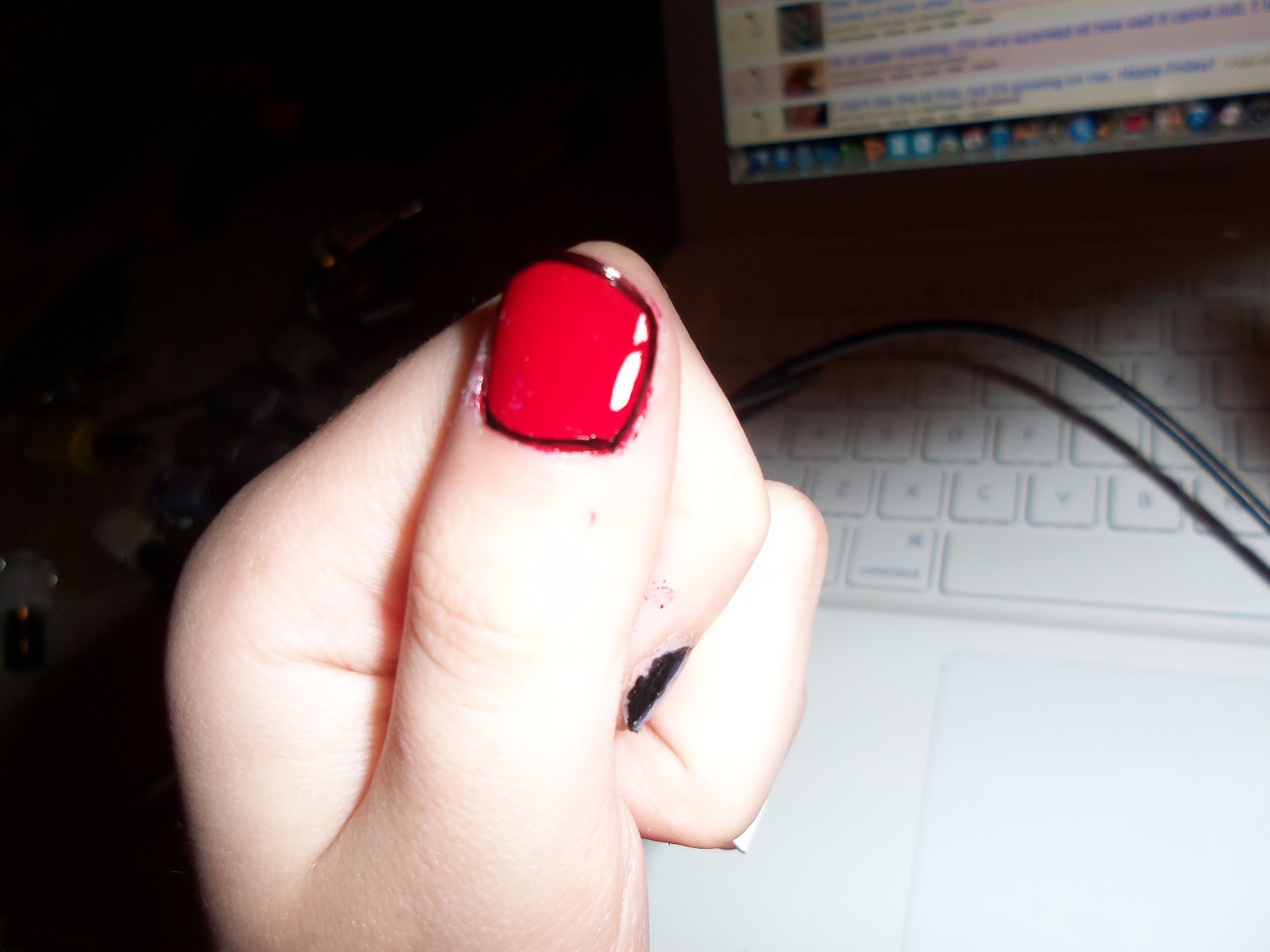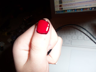 Yeah.. I fell IN LOVE with this new red. It's Pure Ice "Siren" I think.. I don't really know because for some reason the sticker was missing. It's a christmas kind of red and it just goes on like a dream. I mean I only used 1 layer and it was still really dark and not opaque. I just love it so much I'm tempted to go out to Wal-mart and buy another one...