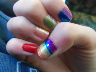 I got a head start on Rainbow week!! Now middle finger on the right hand half of it is sparkly but I can't get my camera to corporate so this is the best I can do! Maybe I'll get a new camera!